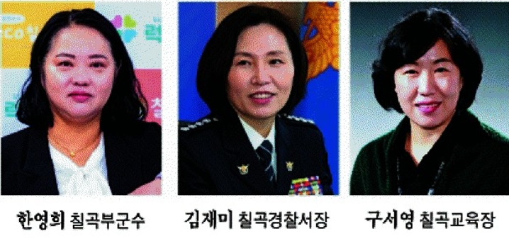 한영희(54) 전 경북도 돌봄정책팀장은 지난 1월 1일 칠곡군 최초로 여성 부군수가 됐다. 1989년 문경시 문경읍에서 지방행정 9급으로 공직을 시작한 한영희 칠곡부군수는 경북도 최초의 여성 자치행정과장을 지낸 입지적 인물이다. 행정 전반에 대한 폭넓은 경험과 현장 중심의 실무 역량을 두루 갖춘 행정 전문가로 평가받고 있다. 소통과 공감을 바탕으로 한 섬세한 행정 스타일이 강점이다.또한 지난해 3월 부임한 김재미 칠곡경찰서장과 구서영 칠곡교육지원청 교육장도 여성이다. 여성 최초인 김 서장은 경찰대학교(10기)를 졸업한 후 경기남부경찰청 6기동대장, 경찰대학 기획협력과장, 대구경찰청 112치안종합상황실 상황팀장 등을 지낸 바 있다. 1989년 교직에 입문한 구서영 교육장은 한국교원대학교대학원을 졸업했다. 김천교육지원청 장학사, 구미 도봉·왕산초 교감, 김천 구성·율곡초 교장을 거친 후 청송교육지원청 교육지원과장, 경북교육청연수원 유초등연수부장을 역임했다.칠곡군에 따르면 칠곡군 전체 공무원 수는 1월초 기준 832명 중 여성은 51.3.%인 427명이다. 5급 과장급 이상 45명(직무대리, 군수·부군수 포함) 중 여성 간부공무원은 46.6%인 21명이다. 6급 팀장급 182명 중 여성 팀장은 88명(48.3%)으로 집계됐다.미래학자 존 나이스비트는 현대 사회를 여성(Female), 감성(Feeling), 상상력(Fiction)이 주도하는 `3F 시대`로 정의했다. 부드러움과 창의성이 핵심 가치가 될 것이라는 그의 예견이 맞아떨어졌다. 이는 권위적이고 물리적인 힘이 지배하던 과거에서 벗어나 여성적 리더십과 감성적 스토리, 디지털 상상력이 새로운 경쟁력을 창출하는 시대로의 변화를 의미한다.칠곡군의 여성 간부공무원 대거 발탁은 여성공무원들에게 불이익을 주지 않는 승진 인사, 아이 낳고 키우기 좋은 공직문화 형성, 여성친화도시 칠곡 만들기 등에 긍정적 영향을 줄 것으로 보인다.