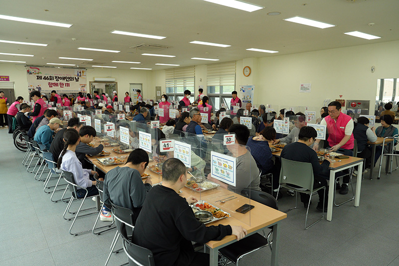 칠곡군장애인종합복지관(관장 김선래)은 지난 20일, 장애인의 날을 맞아 복지관 이용고객, 지역 장애인 과 주민 등 약 200명을 대상으로 무료급식 행사를 성황리에 개최했다.